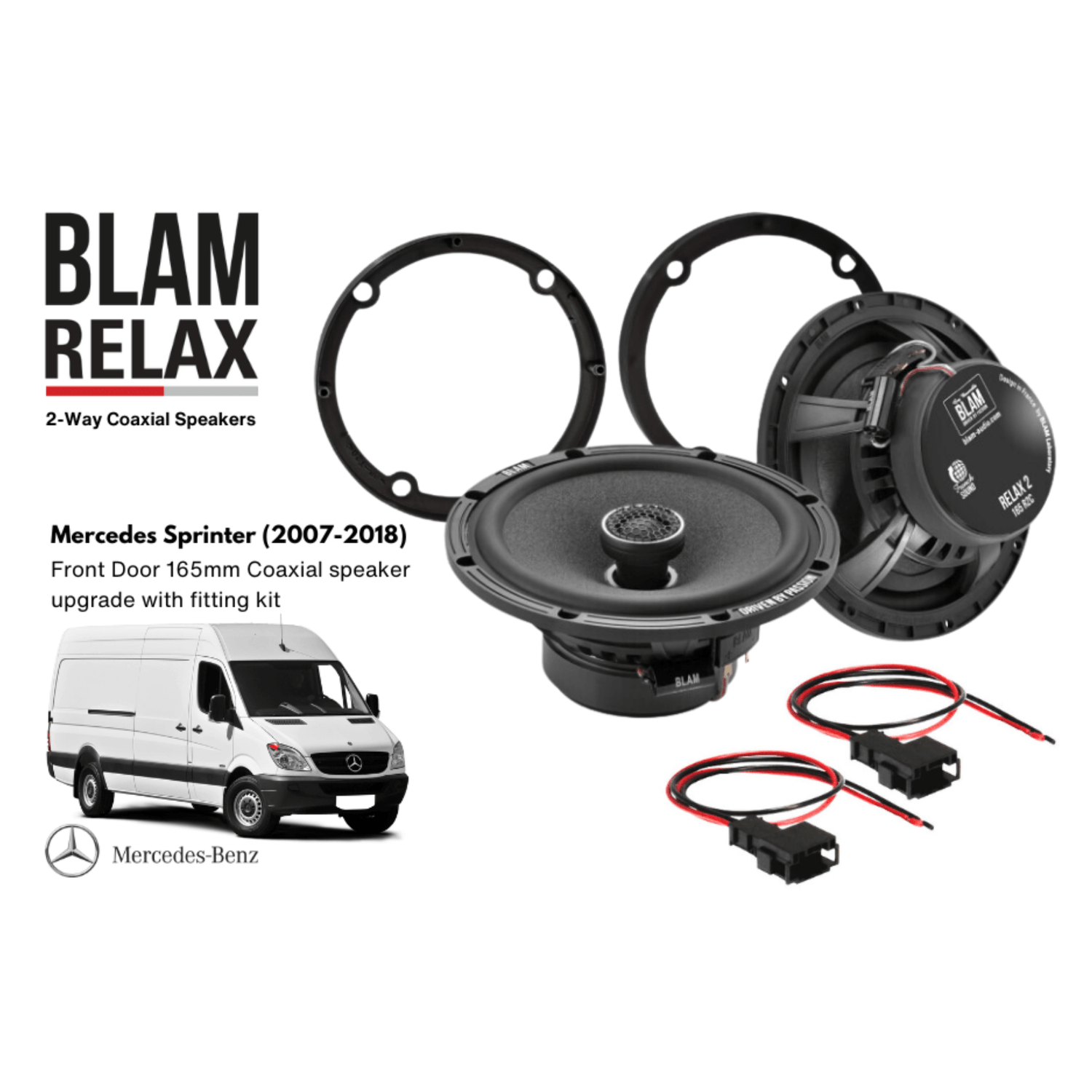 Enhance your Mercedes Sprinter W906's in-car audio experience with the BLAM RELAX 165RC Front Door Coaxial Speaker Upgrade Kit (SFK-MERC1-RC165). Designed for effortless integration, this kit offers a premium sound upgrade tailored to fit the factory speaker locations of 2007-2018 Sprinter models.