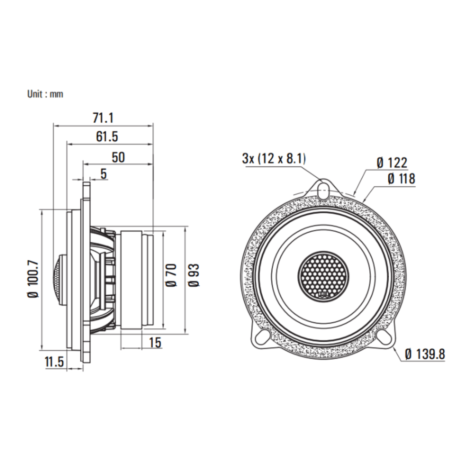 With a peak power of 100 W and 50 W RMS, the BM 100 FC delivers clear and authoritative sound. Operating from 80 Hz to 30 kHz at 2 Ω, and with 90.3 dB sensitivity, these speakers extract excellent performance from standard BMW/MINI audio systems Constructed in France, each speaker features a fiberglass-reinforced composite basket with an OEM BMW dual-plug connector, cellulose pulp cone, butyl surround, Conex spider, 25 mm Kapton voice coil, 70×15 mm ferrite motor, and a solid 4 mm magnetic circuit.