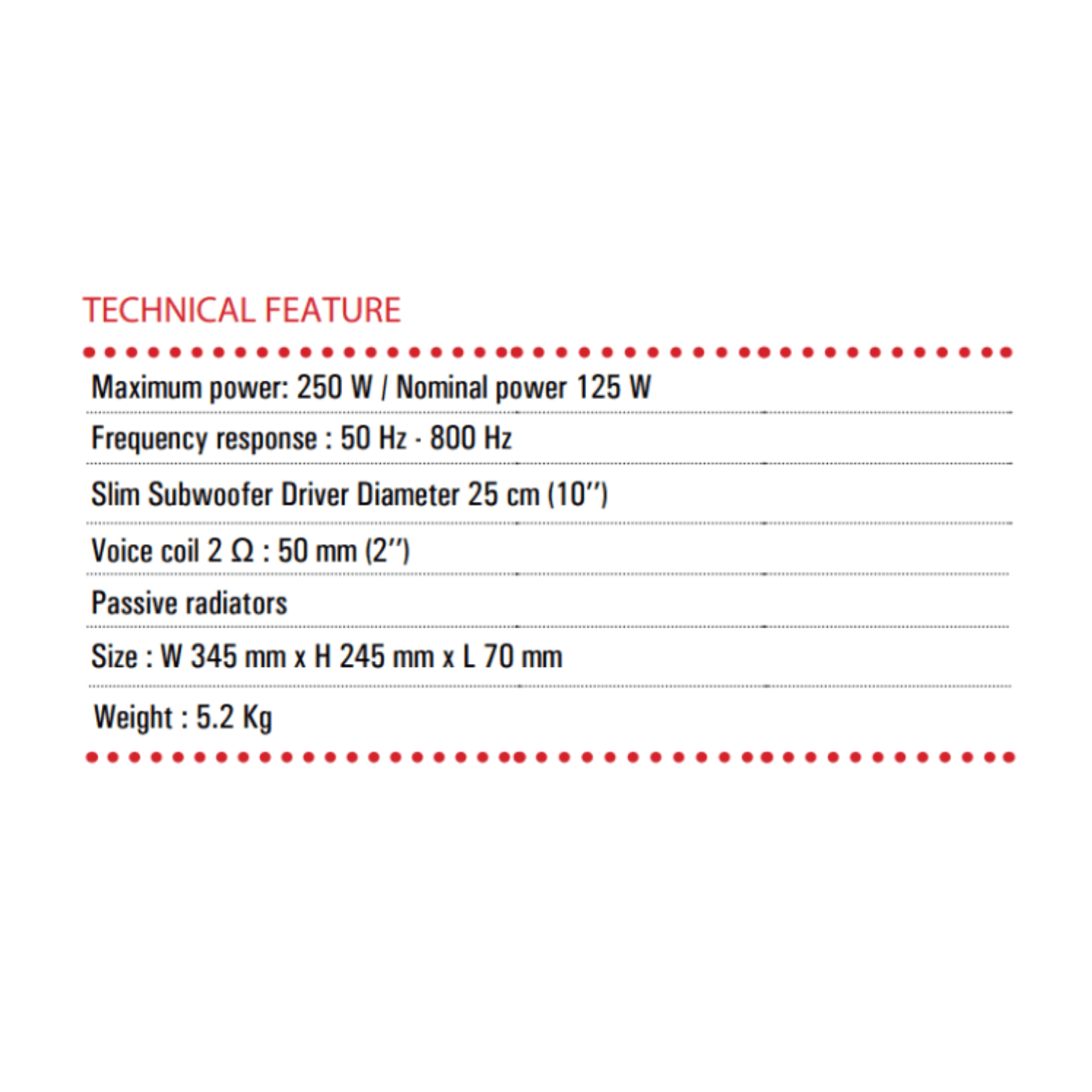 The RELAX MSP 25P extra-slim subwoofer from BLAM makes it easy to improve the quality of your original audio installation by adding bass without reducing too much space in the vehicle. At a height of only 68mm (78mm with Grill) the MSP 25P slim design allows for easy installation in multiple locations throughout the vehicle. It fits perfectly under the seats of a van or SUV, or even on the rear bulkhead of a convertible or pickup.