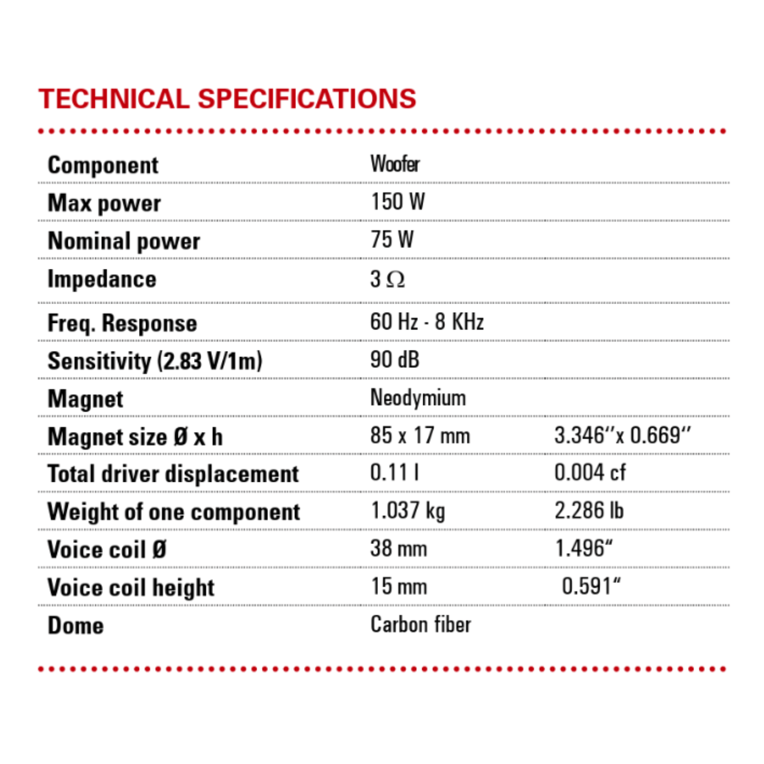 - 6.5 Inch (165 mm) woofer