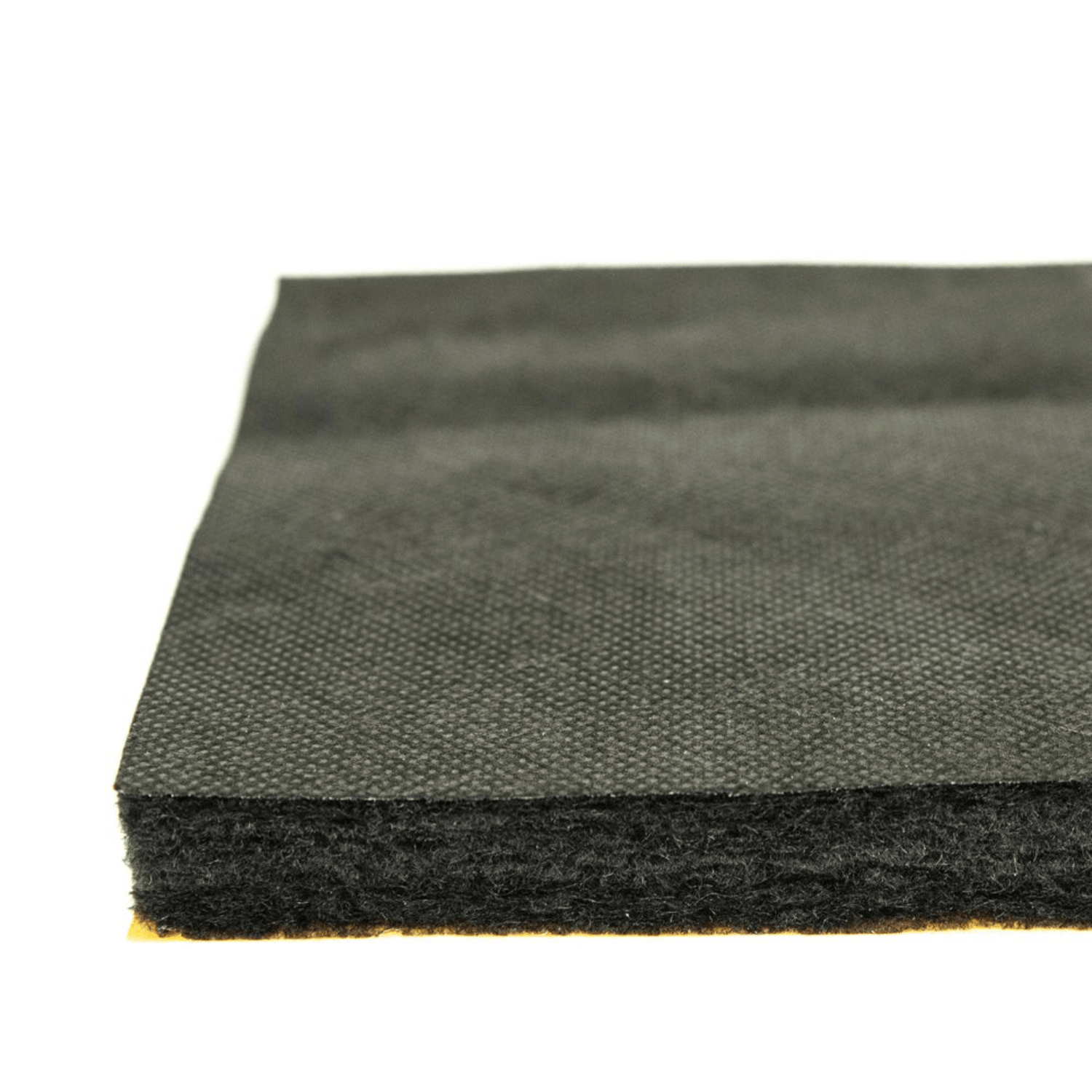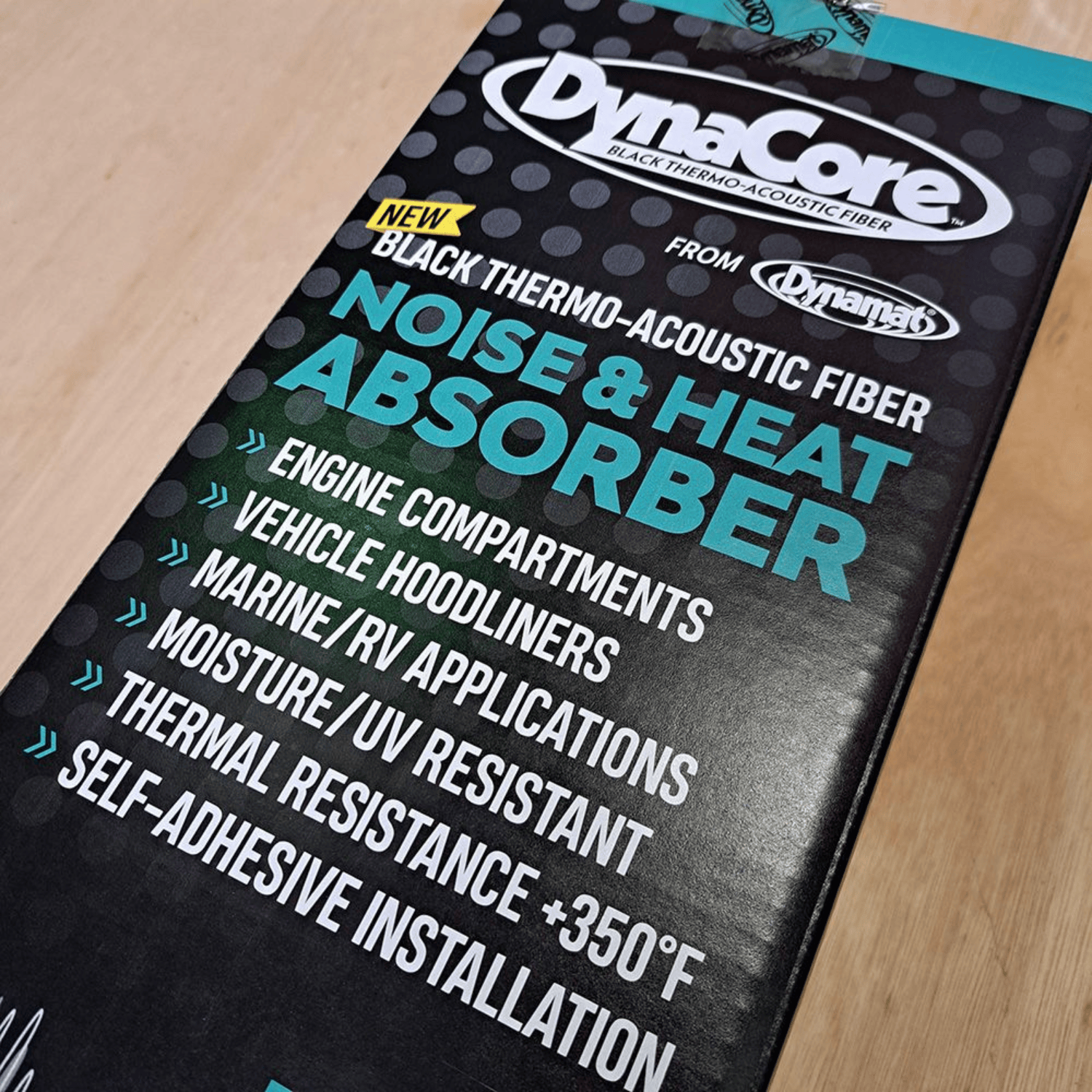 DynaCore a new, modern noise and heat absober with a black fibre core. It offers the unique structure needed to dissipate sound waves and absorb heat. In addition to its excellent sound absorption properties, it is lightweight, flexible, compressible, and thermally insulating. The black Fibre-based core offers excellent low–frequency absorption properties, thermal resistance up to 350° F, and compliance with UL94, MVSS 302, UL HF1, UL HBF standards. Available in 1/2" and 1" thickness and measures 32" x 54" for a total coverage of 12 sq.ft.