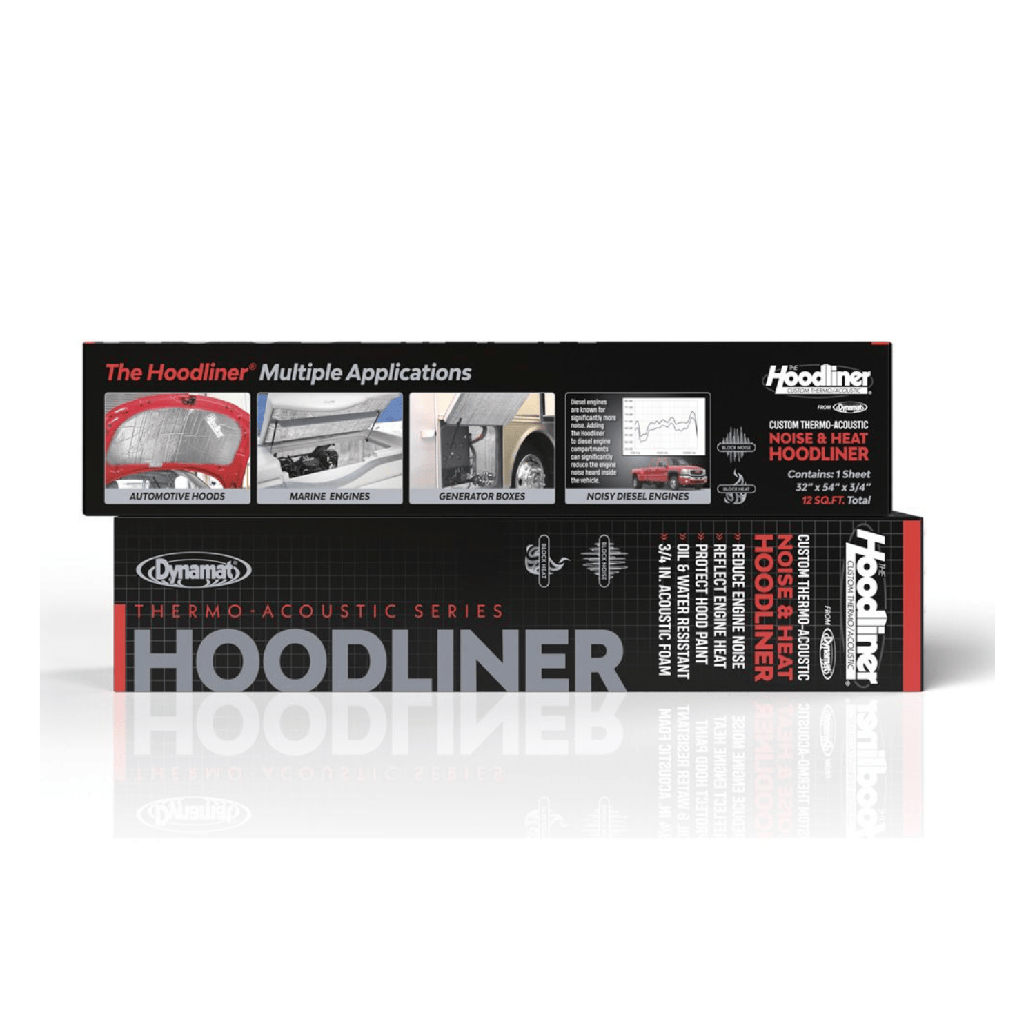 Contains one 32" x 54" piece of Hoodliner for under the bonnet of your vehicle. For best performance, use with Dynamat Xtreme