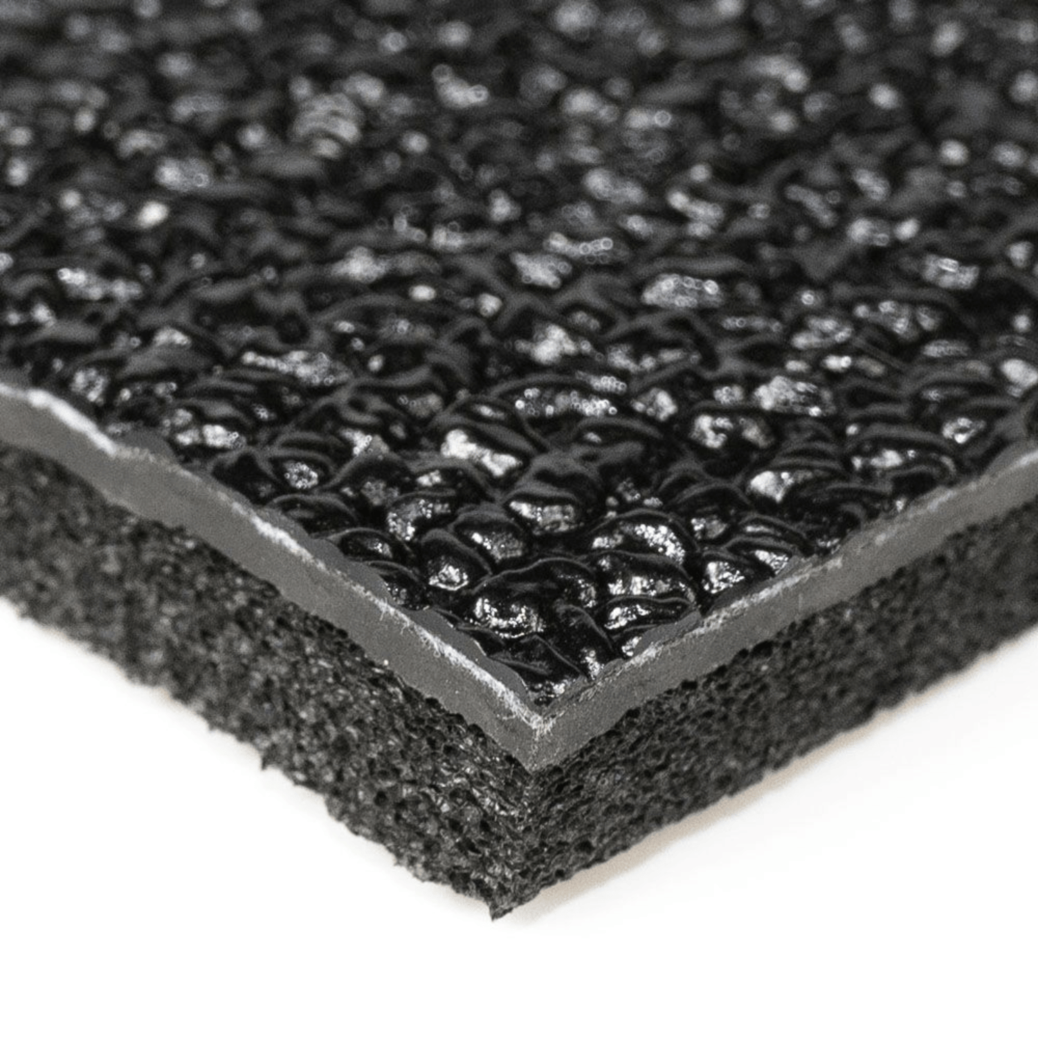 DynaDeck combines a 1lb/sq.ft, 1/8 inch waterproof black vinyl barrier with a 1/4 inch closed cell rubber to block engine and exhaust heat, and quiet road noise. As DynaDeck is completely weatherproof and waterproof, it is ideal for use in vehicles where a durable, waterproof floor material is desired.