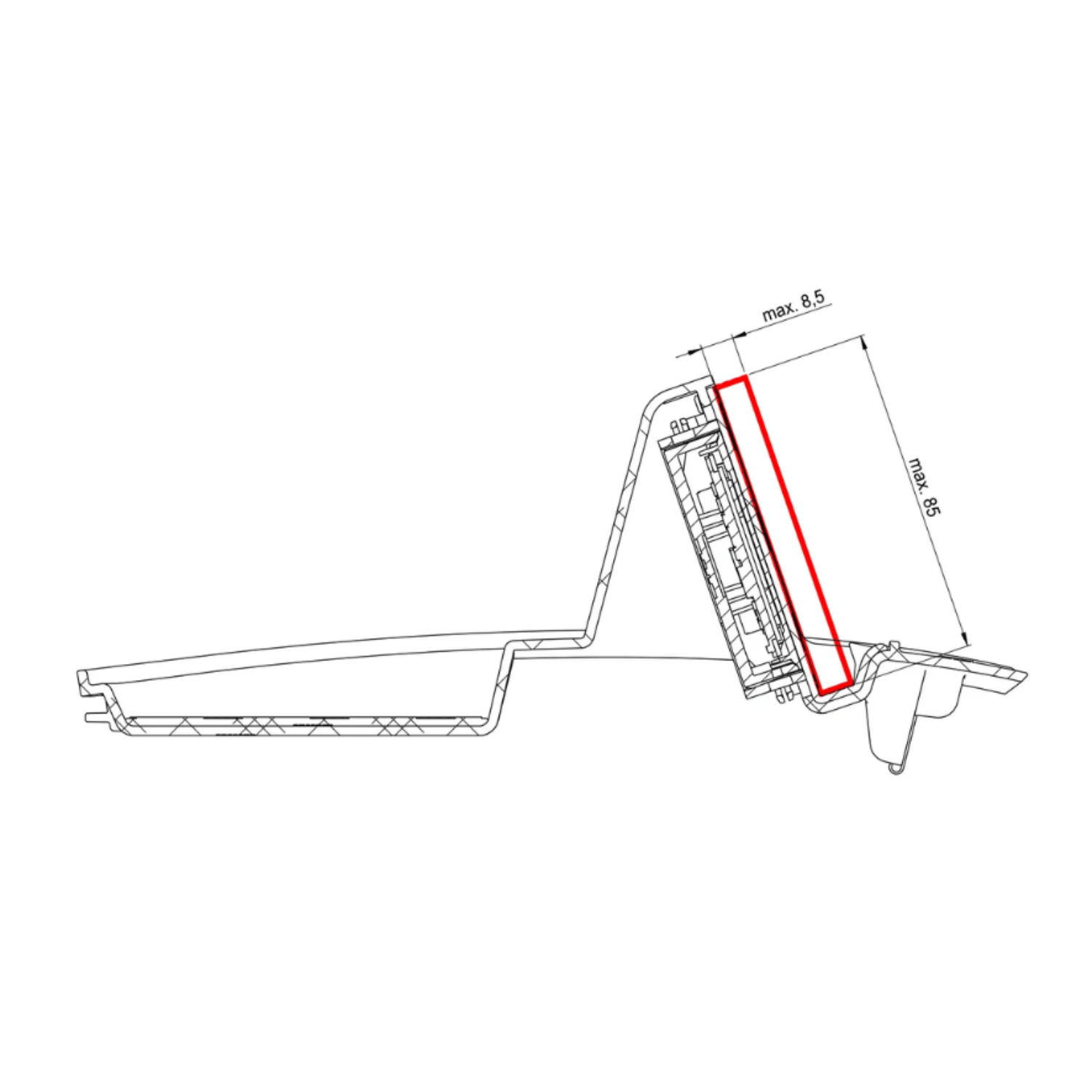 - 179mm x 85mm x 8,5mm max.