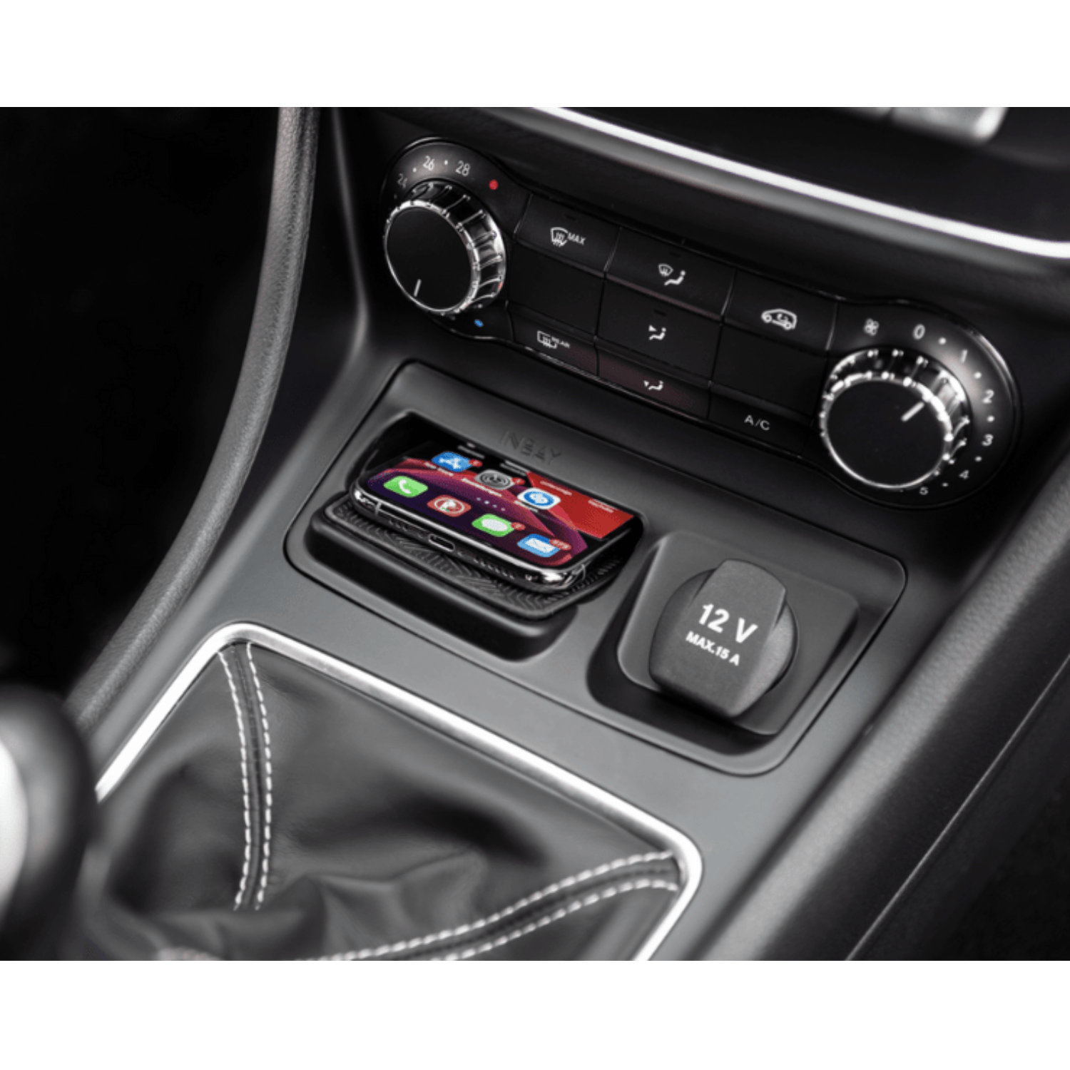 Enhance everyday convenience in your Mercedes-Benz A-Class, CLA or GLA with the INBAY® 15 W wireless charging pocket. This precision-engineered charging tray replaces the original console storage compartment and transforms it into a high-power Qi wireless charging station, maintaining a factory-finished appearance.