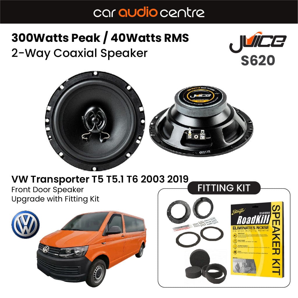 The Juice 6.5" 165mm 300W Speaker Upgrade Kit for VW Transporter T5, T5.1, T6 (2003-2019) offers powerful sound performance, premium components, and easy installation. Elevate your driving experience with superior audio quality and clarity.