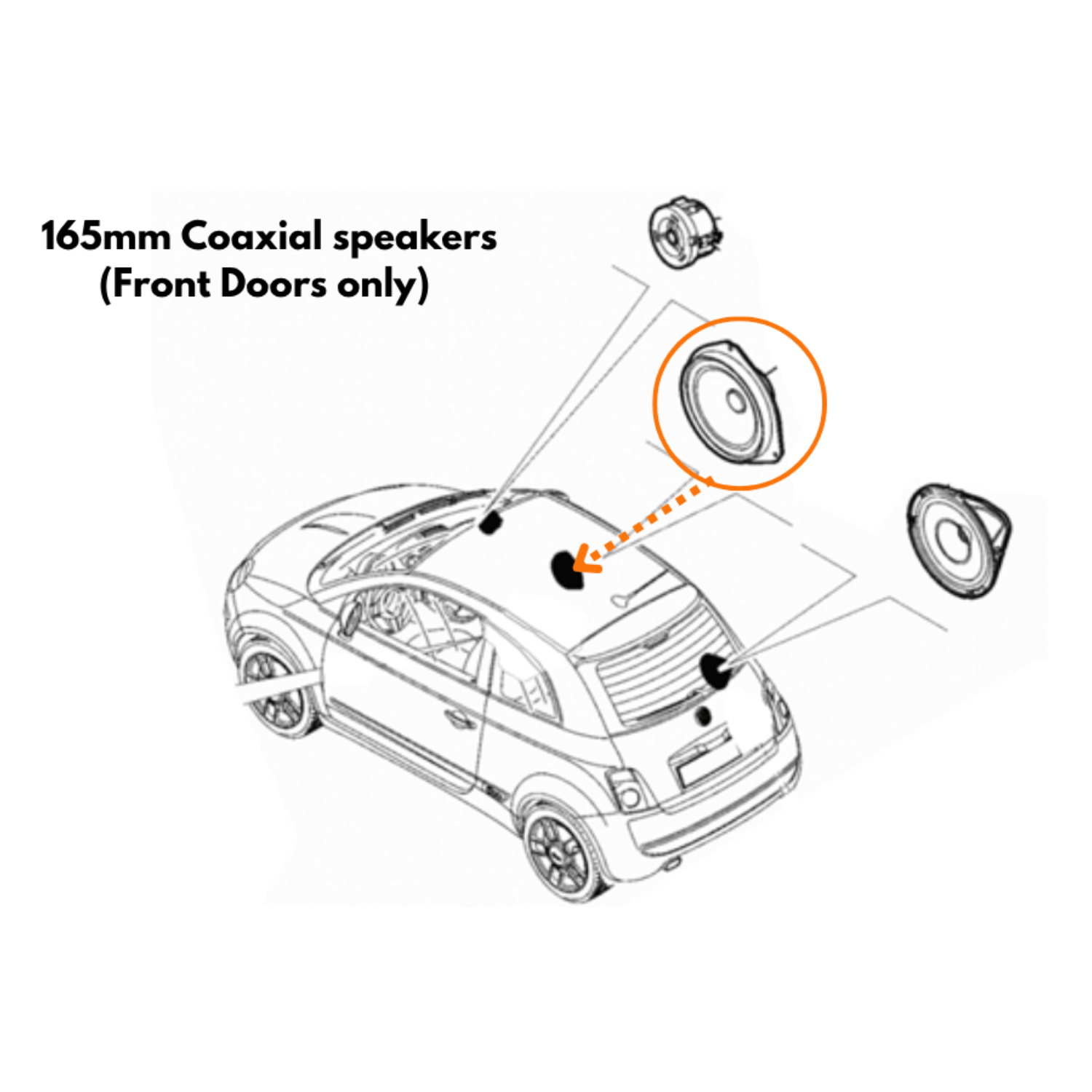 This speaker upgrade fitting kit is for Abarth/ Fiat 500 (2008-2016) front doors with a standard audio system.