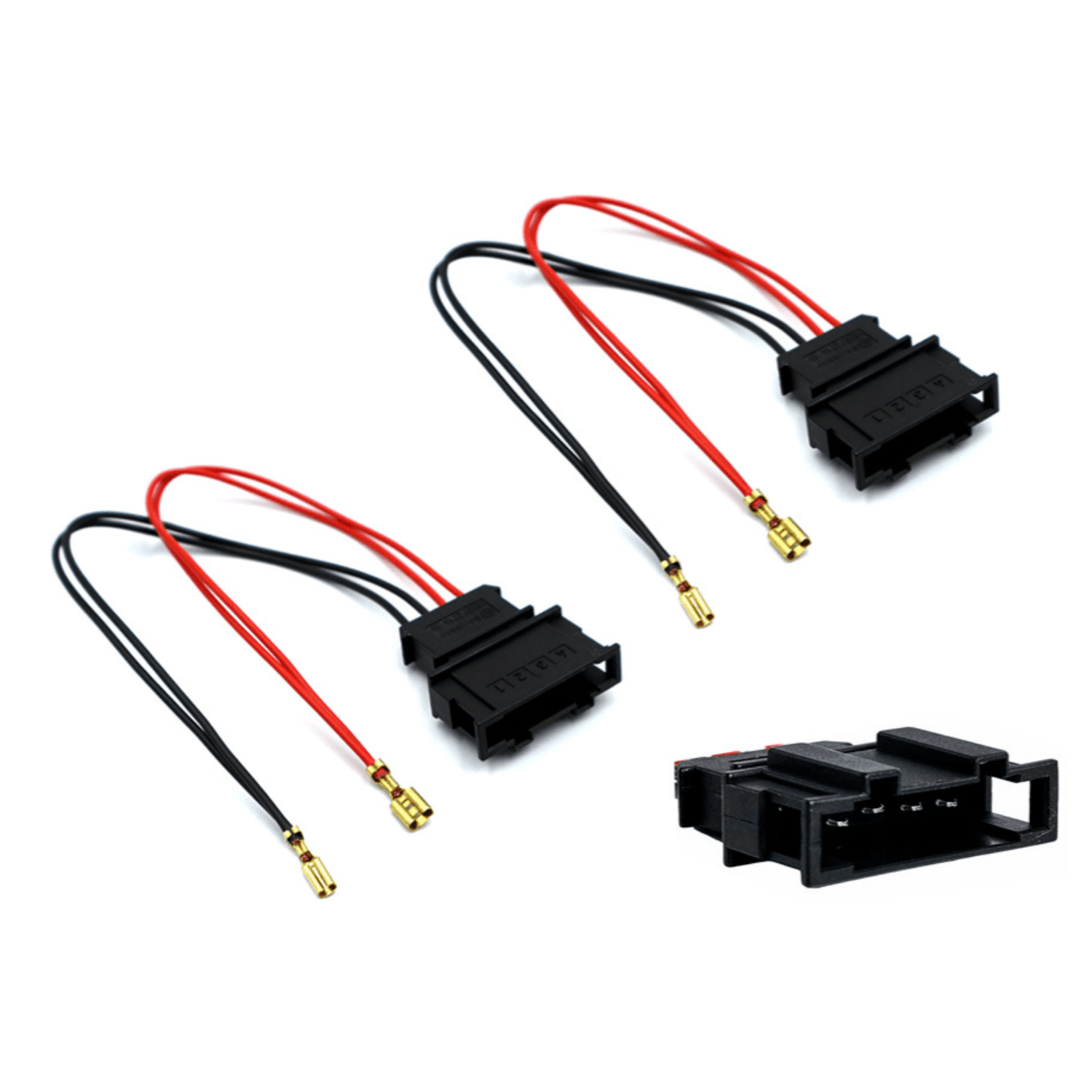 A pair of speaker adapter cables for various Fiat vehicle models. Use to fit new aftermarket speakers without needing to cut off the original speaker connectors.