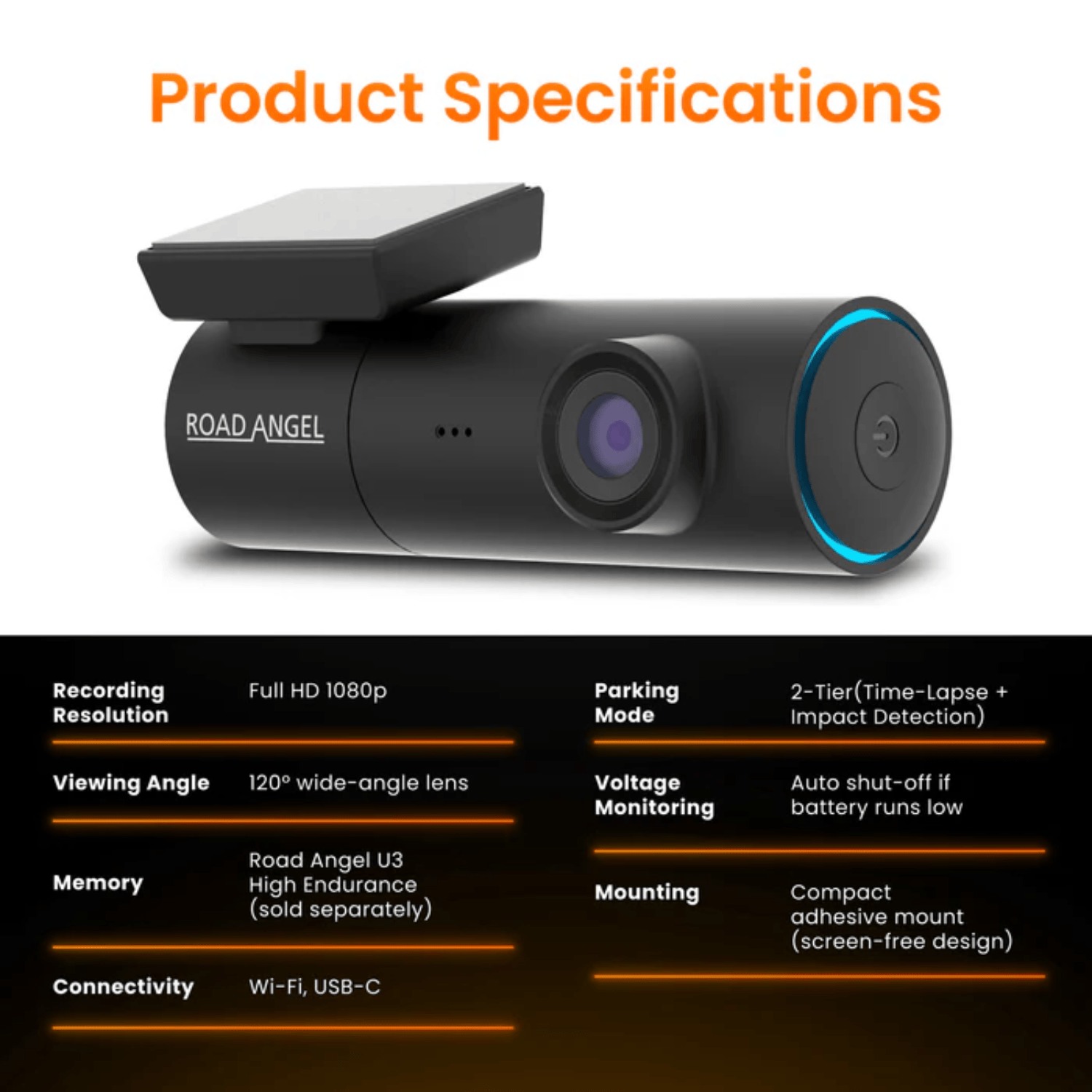 Road Angel Halo Spark Full HD 1080p Single Dash Cam with Parking Mode & Winter Mode